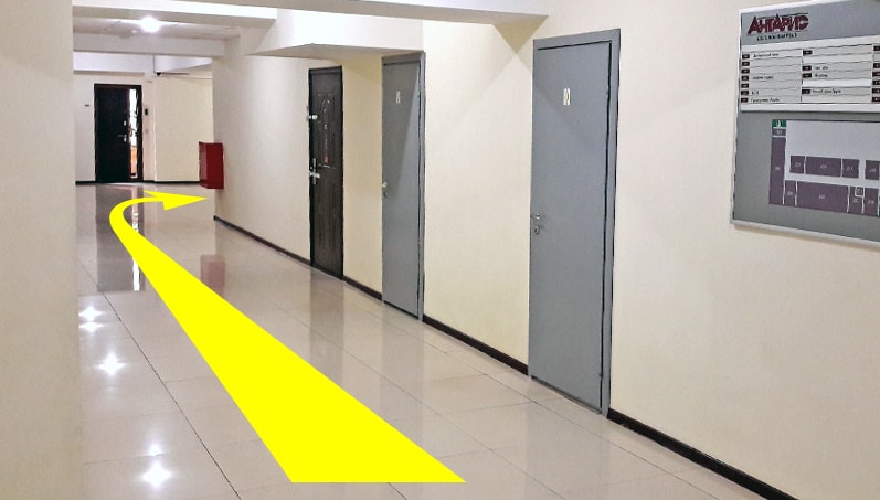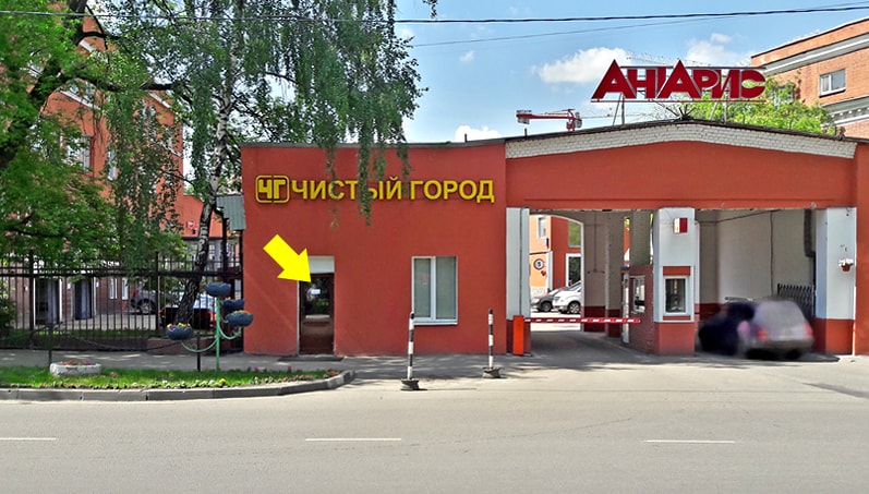 1. Дойти до конца здания, до одноэтажной проходной с надписью «ГАРАЖ».